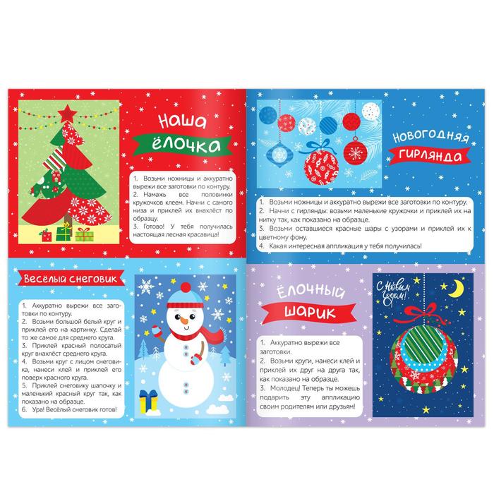 With this creative book, the child will get bright New Year's crafts. They can decorate the Christmas tree, the interior of the nursery or give as a gift to loved ones.