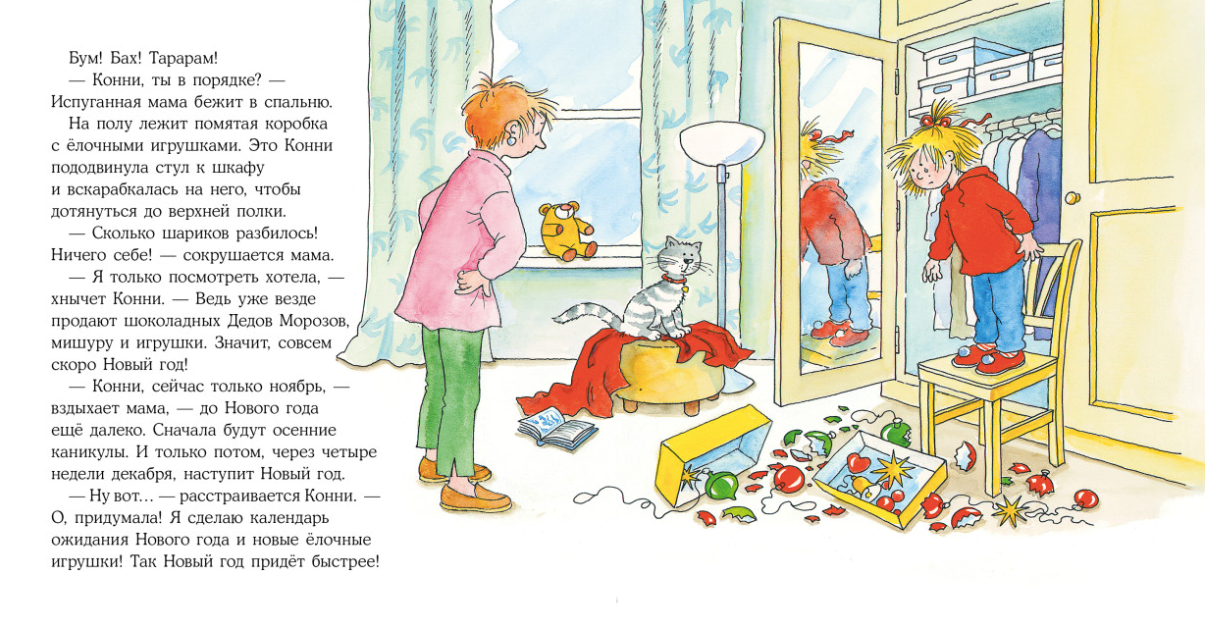 Все дети с нетерпением ждут Новый год. Ведь это самый волшебный праздник, когда может исполниться заветное желание и Дед Мороз принесёт долгожданный подарок. И даже ожидание праздника наполняет дом волшебством, зимним настроением и приятной суетой. Вот и Конни не терпится поскорее начать подготовку к Новому году. Вместе с родителями она мастерит новогодние украшения, покупает ёлку и готовит праздничный стол. А исполнит ли Дед Мороз секретное желание Конни и получит ли она желанный подарок на Новый год, вы узнаете, когда дочитаете историю до конца. Вместе с Конни ребёнок придумает, что может стать вашей семейной традицией празднования Нового года. Научится делать новогодние украшения своими руками.