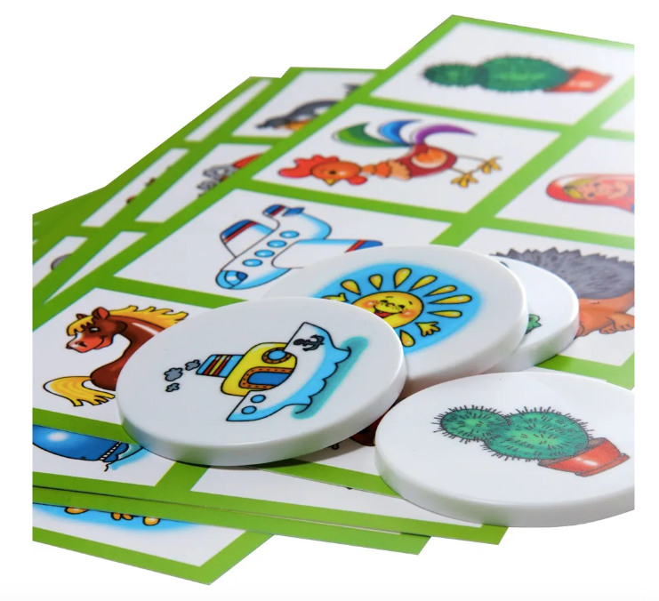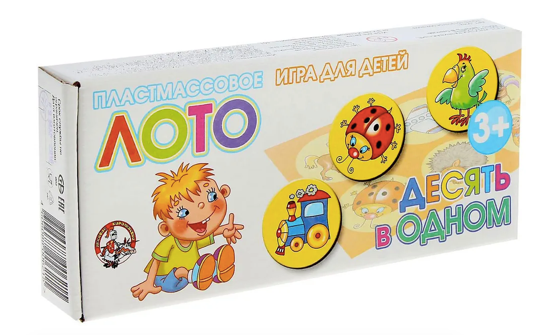 Пластмассовое лото «10 в 1» развивает память, внимание, мелкую моторику рук, помогает освоить навыки обобщения и расширить кругозор. Детское пластмассовое лото 10 в 1 - это уникальная возможность сыграть вместе с ребенком поочередно в 10 различных занимательных игр. Играя в такое лото, вы не просто весело проведете время со своим малышом, но и поможете ему познакомиться с новыми предметами. Перед игроками раскладывается необходимое количество карт, лишние карточки убираются. Ведущий достаёт из мешка любое случайное количество фишек и показывает игрокам, громко проговаривая, что изображено на каждой из фишек. Тот игрок, который видит на своем поле изображение одной из произнесённых и показанных фишек, забирает её себе, накрывая соответствующую ячейку поля на карточке. Побеждает тот игрок, чьё игровое поле полностью закроется нужными фишками.