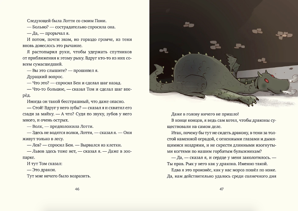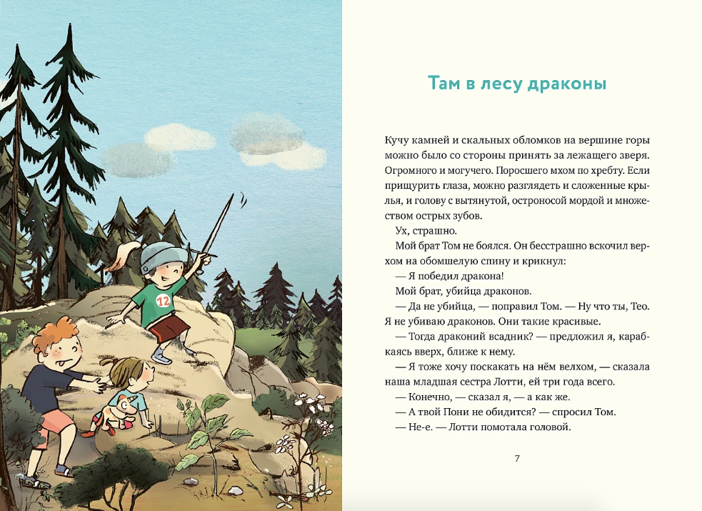 На этот раз Тео, Том и Лотти становятся автогонщиками, пиратами, рыцарями и драконьими всадниками. И они уверены, что за тёмной аркой в колючих зарослях рядом с игровой площадкой скрывается настоящий дракон! Но что делать с драконом? Здесь понадобится поддержка настоящих рыцарей без страха и упрёка. Удивительно, но они могут принимать разные формы: Пенелопы, капитана футбольной команды, которая не верит в драконов. На самом деле. Или противного Нильса, от которого нельзя ждать ничего хорошего. До сих пор. Но встреча с почти настоящим драконом меняет всех.