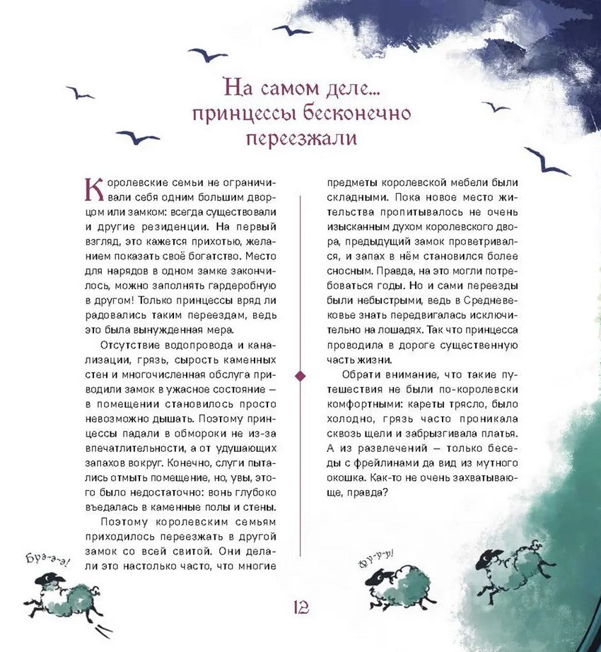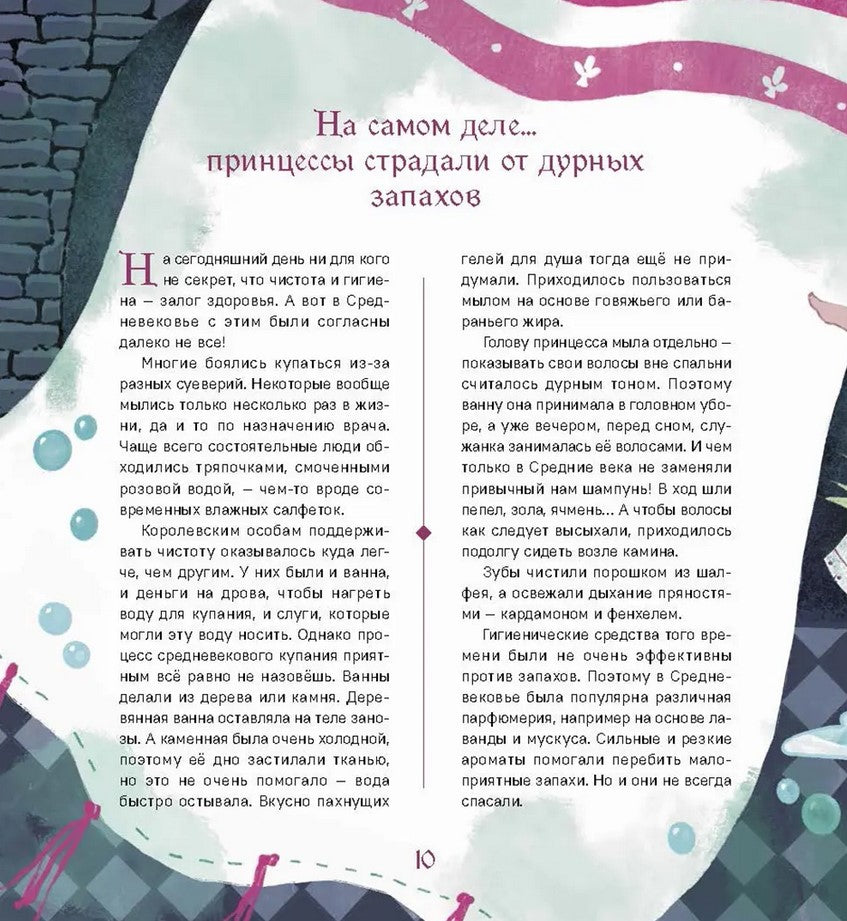Представь себе, что ты встретилась с феей. И она может одним взмахом волшебной палочки превратить тебя в настоящую принцессу! Хочешь? Подожди-подожди, не торопись с ответом! Сначала прочитай эту книгу и подумай, готова ли ты к жизни во дворце? Там, между прочим, довольно холодно и не очень чисто… И совсем нет конфет! С принцами тоже не всё так просто, как показывают в мультфильмах. Тебе придётся учиться - и не только музыке и танцам. А если простудишься, лечить тебя станут пиявками и холодными ваннами. Но может быть, сейчас принцессам живётся легче? Об этом мы тоже расскажем: ведь и в наше время им нужно ежедневно много трудиться - королевский титул оказывается нелёгкой ношей.