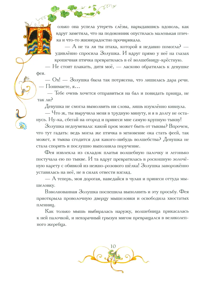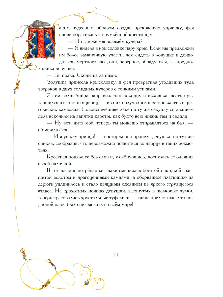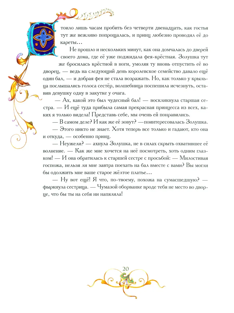 "Если замешкаешься, то с последним ударом башенных часов твоя карета снова станет тыквой, кучера - крысами, кони - мышами, лакеи - ящерицами, а твой пышный наряд превратится в прежнее скромное платье", - это был последний наказ феи-крёстной, с помощью волшебной палочки превратившей тыкву в карету, а замарашку - в восхитительную красавицу, которая уже сейчас отправится на бал, на встречу с принцем!.. Поколение за поколением эта грёза, эта мечта продолжает волновать и очаровывать читателей (и особенно читательниц всех возрастов). Ведь "Золушка" - вечно любимая сказка, которая никогда не стареет. Благодаря изысканному прикосновению своей кисти Кинуто Крафт добавила новую теплоту и глубину в образ Золушки, которая - хотя над ней жестоко издевались мачеха и сводные сёстры, - всё же завоевала сердце доброго принца. Для всех, кто мечтает о волшебной фее-крёстной, щедрых дарах и счастливой жизни, - эта фантазия. Литературная версия и иллюстрации Кинуко Крафт.