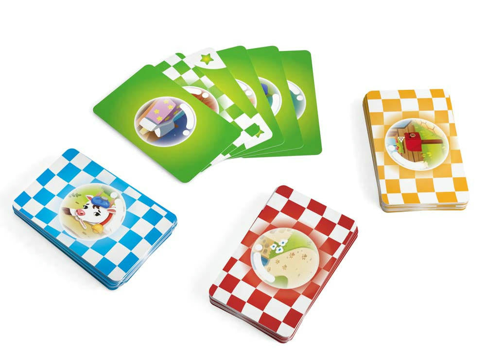 В составе игры: 81 карточка, инструкция в рисунках, правила игры.