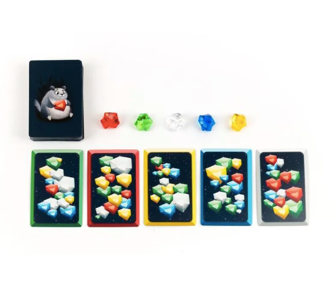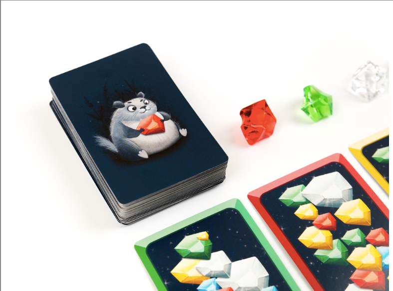 Каждый раунд открывается одна карточка с заданием, и участники одновременно стараются вычислить цвет загаданного кристалла и первыми схватить его.