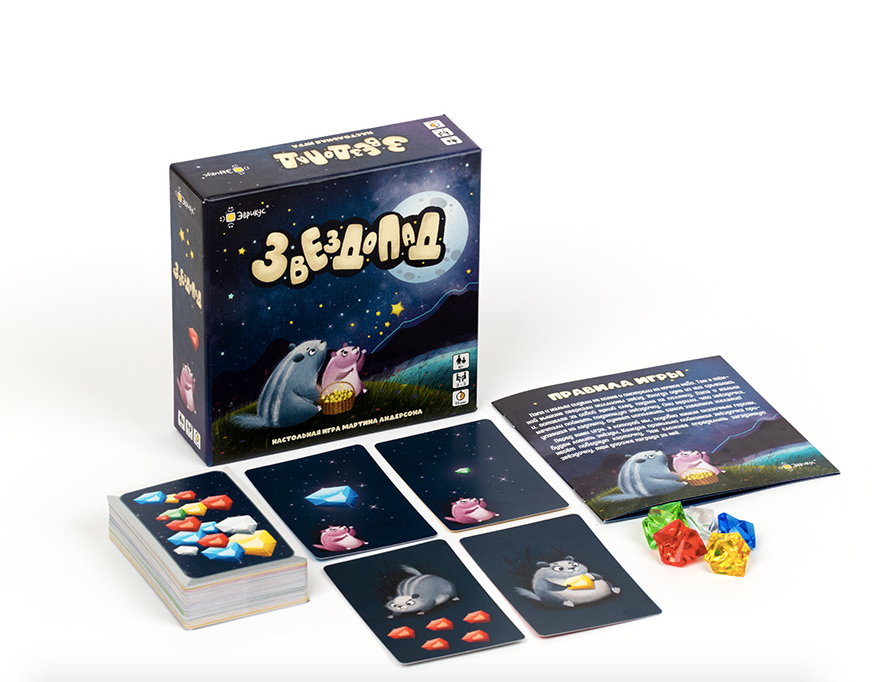 Звездопад – семейная настольная игра. В ней живут забавные зверята, которые мечтают поймать падающую звёздочку. А мы присоединимся к ним на вечерней прогулке и обязательно поможем.