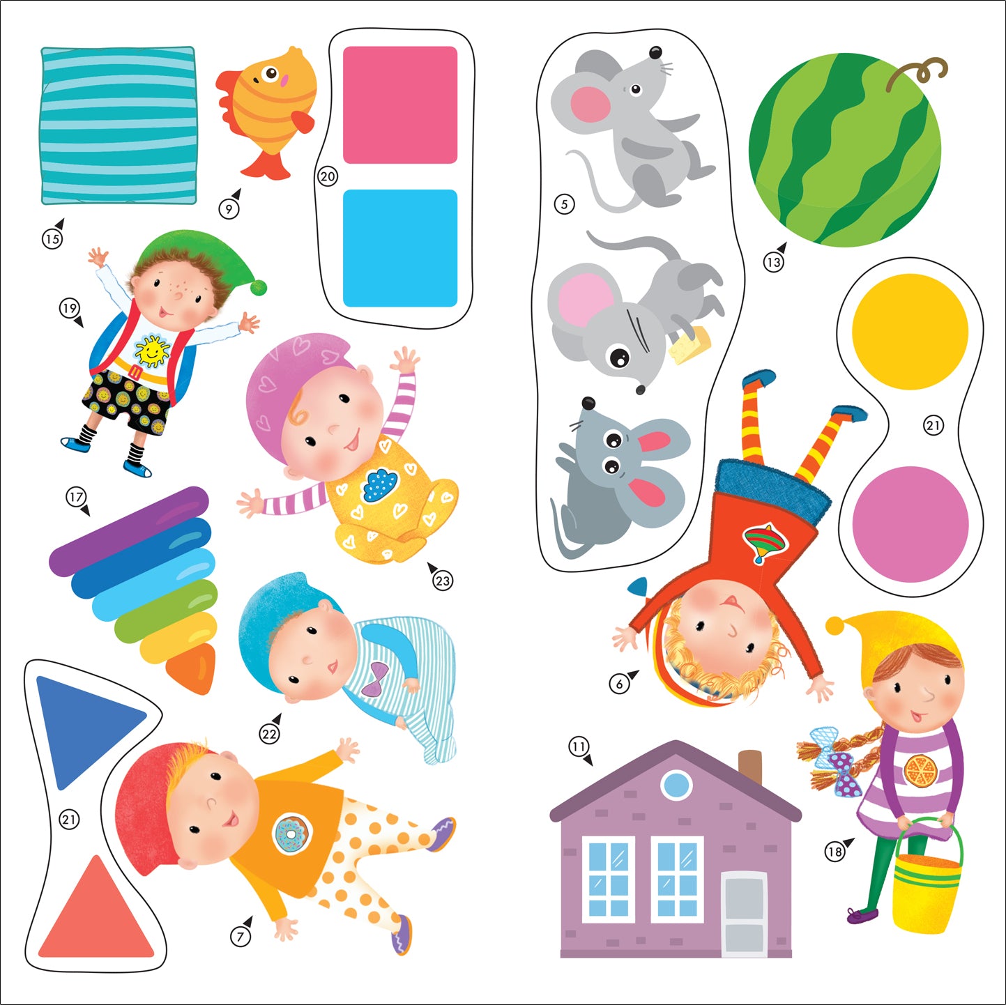 Книга «Счет, форма, величина 1+» из серии «Школа Семи Гномов. Активити с наклейками» предназначена для формирования и развития у детей от 1 года до 2 лет элементарных математических представлений, способности сопоставлять величину предметов, определять их форму.