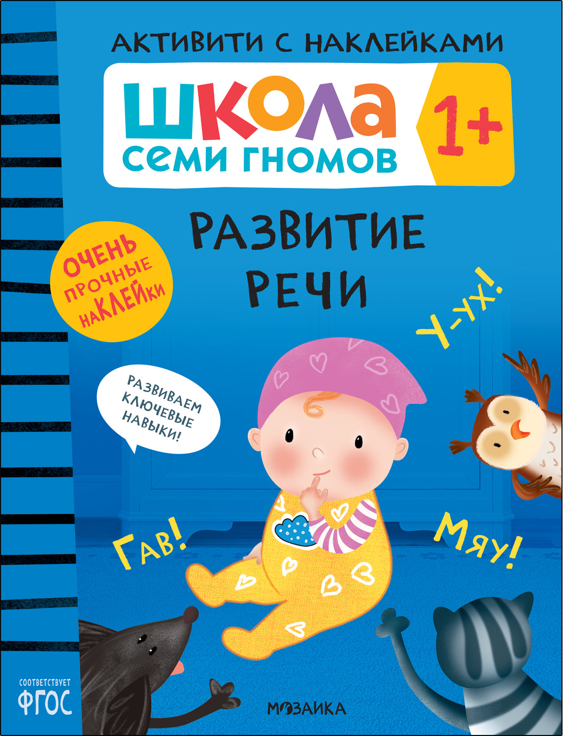 Книга «Развитие речи 1+» из серии «Школа Семи Гномов. Активити с наклейками» предназначена для развития речи и формирования словарного запаса у детей от 1 года до 2 лет.
