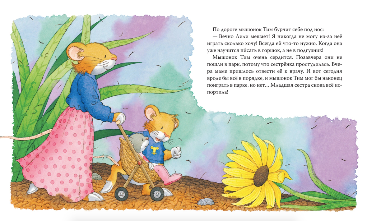 Серия книг про смешного и обаятельного мышонка Тима поможет малышам понимать, признавать и называть свои чувства, научиться общаться со сверстниками и справляться с трудными ситуациями. Мышонок Тим любит играть с друзьями в парке. Вот только с тех пор, как у него появилась младшая сестренка, прогулки длятся не очень долго: маме приходится быстро возвращаться домой, чтобы сменить малышке подгузник. Тогда Тим решил взять дело в свои лапы и поскорее научить сестренку ходить на горшок.