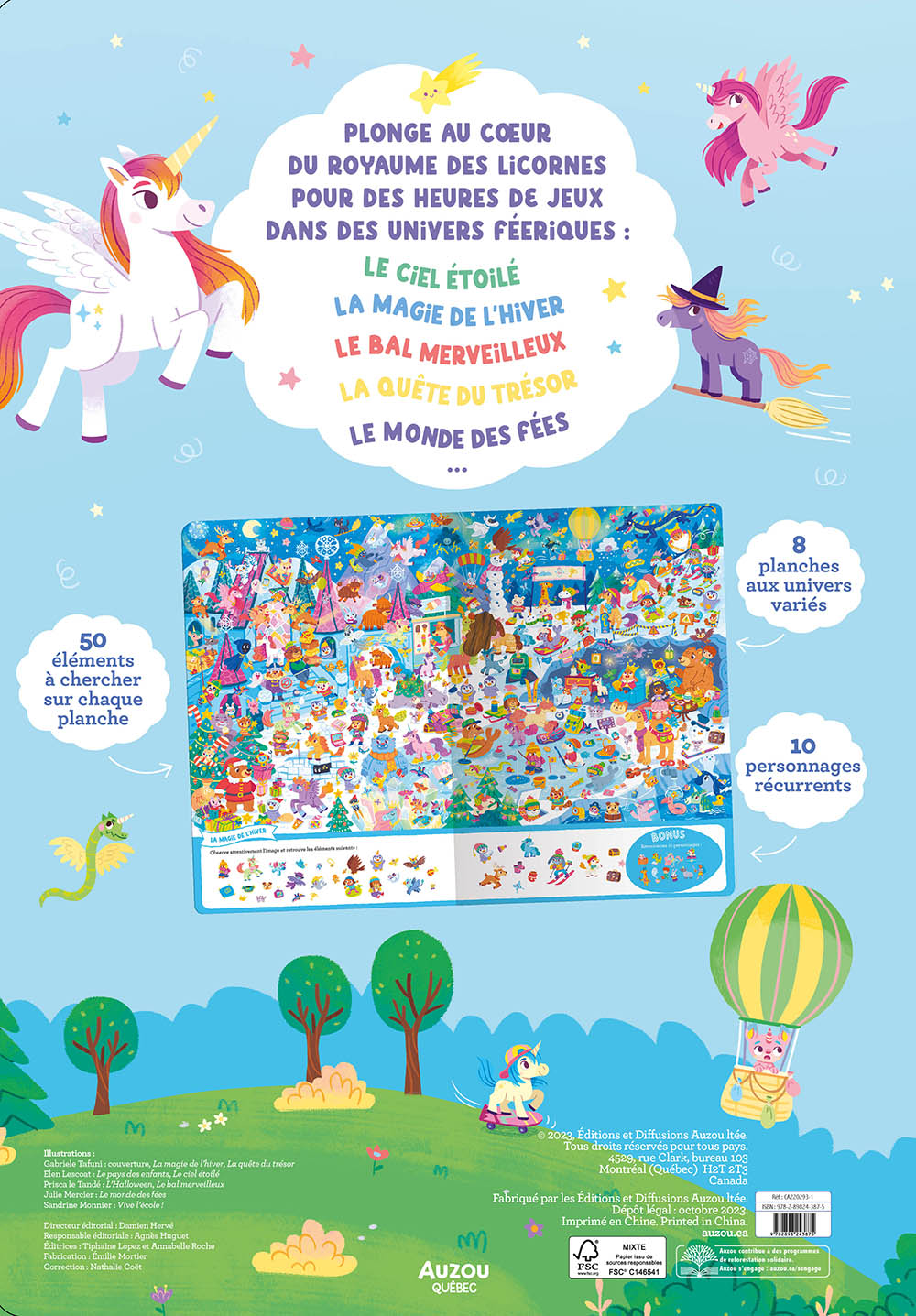 Plonge au cœur du royaume des licornes : pour des heures de jeux dans des univers féeriques : Le ciel étoilé, la magie de l'hiver, le bal merveilleux, la quête du trésor, le monde des fées… Découvre 8 univers colorés et détaillés, avec 50 éléments à retrouver sur chaque page, dont 10 personnages récurrents.