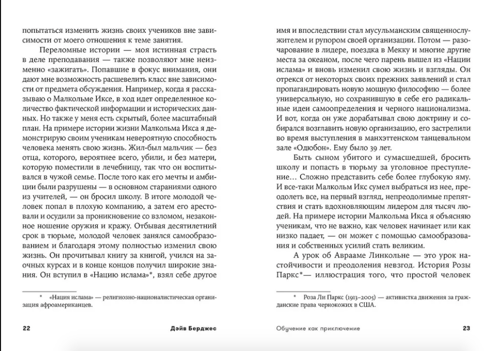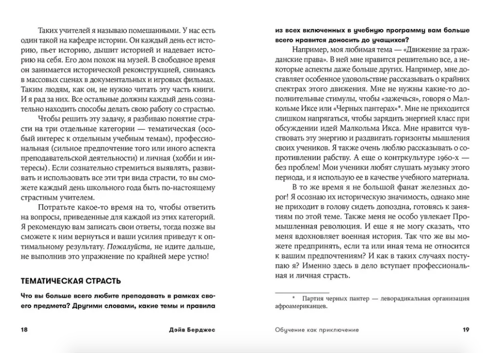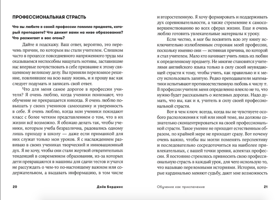 Эта книга призвана вдохновить тех, кто сам обязан вдохновлять каждый день самую сложную аудиторию — детей. Дэйв Берджес создал уникальную методику работы с учениками. Он утверждает, что любой педагог способен сделать так, чтобы учащиеся не просто полюбили его предмет, но ждали его с нетерпением как праздника. Он раскрывает конкретные приемы, которые не оставят равнодушными ни одного ученика. Эта книга не только о том, как создавать уникальные занятия, она о том, как научиться творчески подходить к подаче любого материала и самому получать удовольствие от того, что ты делаешь.