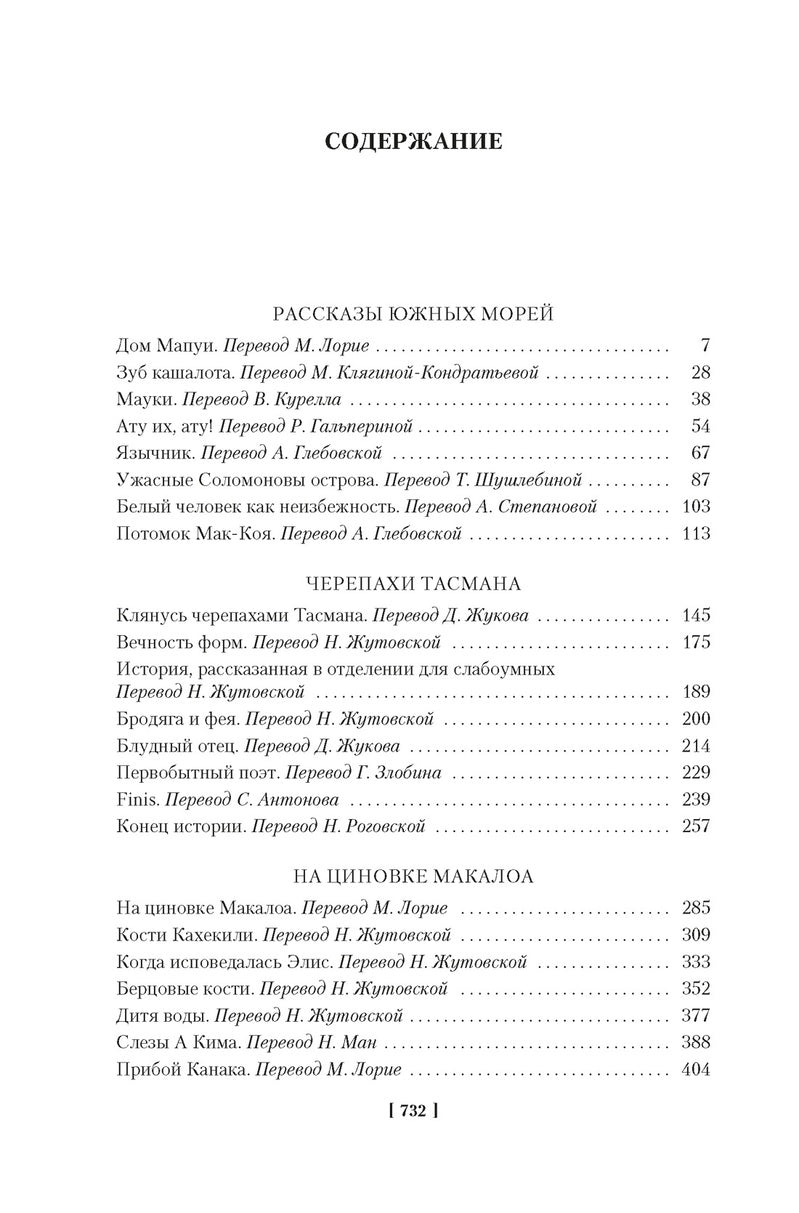 Джек Лондон, признанный классик американской и мировой литературы, известен прежде всего как автор приключенческих произведений. Его романы и повести об увлекательных и рискованных странствиях, о сильных, целеустремленных и благородных людях пользуются неизменным успехом у читателей. Но Джека Лондона по праву называют еще и одним из крупнейших мастеров короткого рассказа. В настоящее издание вошли сборники: «Рассказы Южных морей» (1911), «Черепахи Тасмана» (1916), «На циновке Макалоа» (1919) и «Для храбрости» (1923). В них объединены рассказы, написанные по большей части в поздний период творчества. Разнообразие сюжетов и тем, неожиданные и даже парадоксальные развязки, искренность и вера в человеческую природу — характерные черты прозы Джека Лондона, за которые миллионы читателей во всем мире любят его произведения. Во многих рассказах описывается жизнь на островах Тихого океана, обычаи и нравы местного населения, удивительная природа; великолепный рассказчик, Джек Лондон дает возможность читателям открыть для себя этот экзотический мир. Ряд рассказов печатается в новых переводах. В издание также вошел роман «Приключение» (1910), действие которого разворачивается на Соломоновых островах.