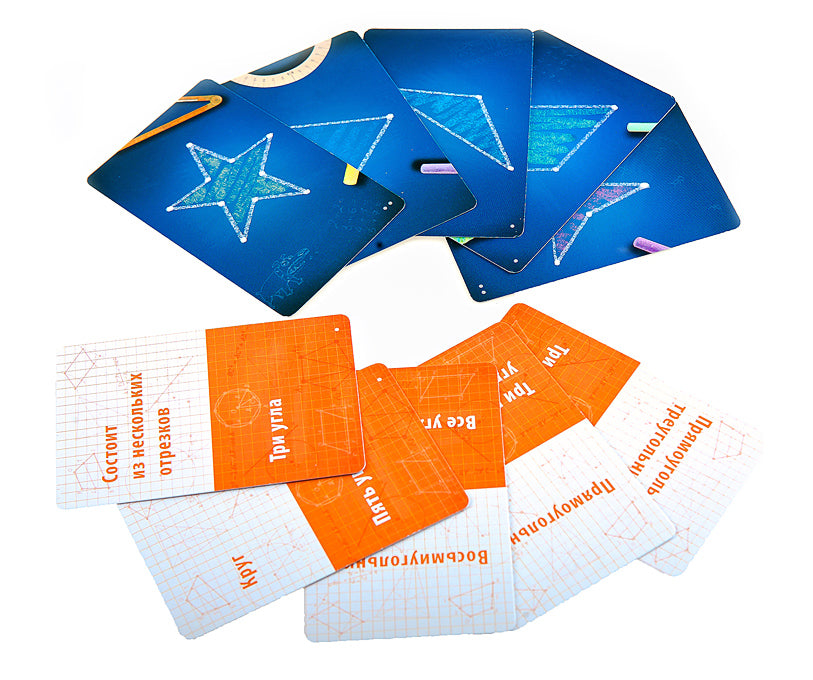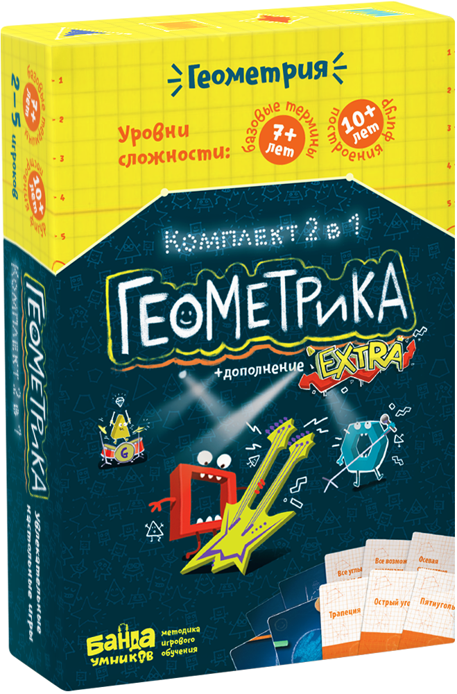 Дополнение «Геометрика Extra» — набор дополнительных карточек, которые делают игру динамичнее и сложнее, а также позволяют освоить изрядную порцию новых геометрических понятий.