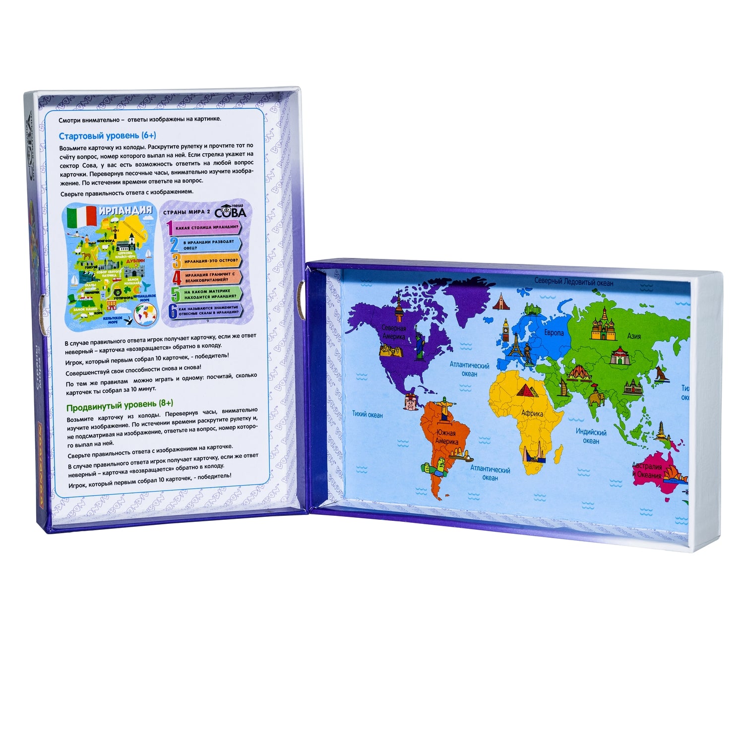 Развивайте интерес детей к географии с настольной игрой серии Умная Сова! Книга, атлас, различная познавательная литература могут и не заинтересовать ребенка, но увлекательная игра пробудит в нем интерес к этим знаниям. К тому же, мало кому удается посетить за один час и азиатские страны, и американский континент, но с викториной СТРАНЫ МИРА такое путешествие вокруг света по силам всем! В процессе игры ребенок познакомится с географическим положением, столицами, крупными городами, достопримечательностями, флагами разных странах, разовьет логику, усидчивость, память и внимательность.