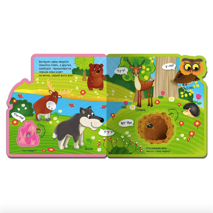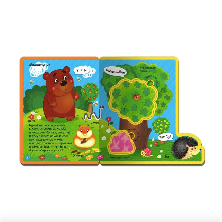 Познавательно-развивающую книжку «Как говорят животные. В нашем лесу», выпущенную в серии «Книжка с мягкими пазлами» издательства «Омега», можно использовать в качестве учебного пособия для самых маленьких, которое в игровой форме расскажет вашему ребёнку о разных лесных животных и поможет запомнить их названия. Яркая и привлекательная книжка удобного для детских ручек формата сделана из безопасного мягкого полимера с закругленными краями страниц. На каждом книжном развороте внимание вашего малыша привлекут напечатанные на качественной мелованной бумаге красочные изображения животных, а мягкие пазлы станут элементом игры и доставят много радости. Издание поможет вашему ребёнку развить навыки речи, мелкую моторику, зрительную и слуховую память.