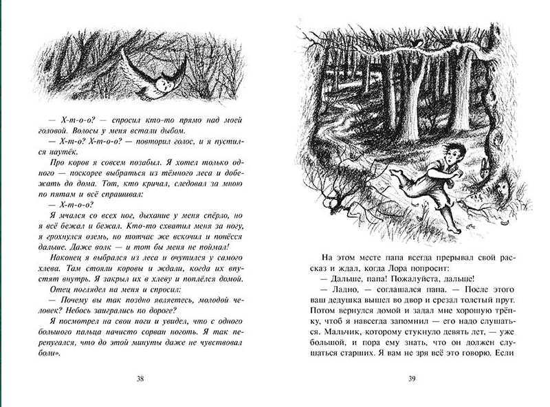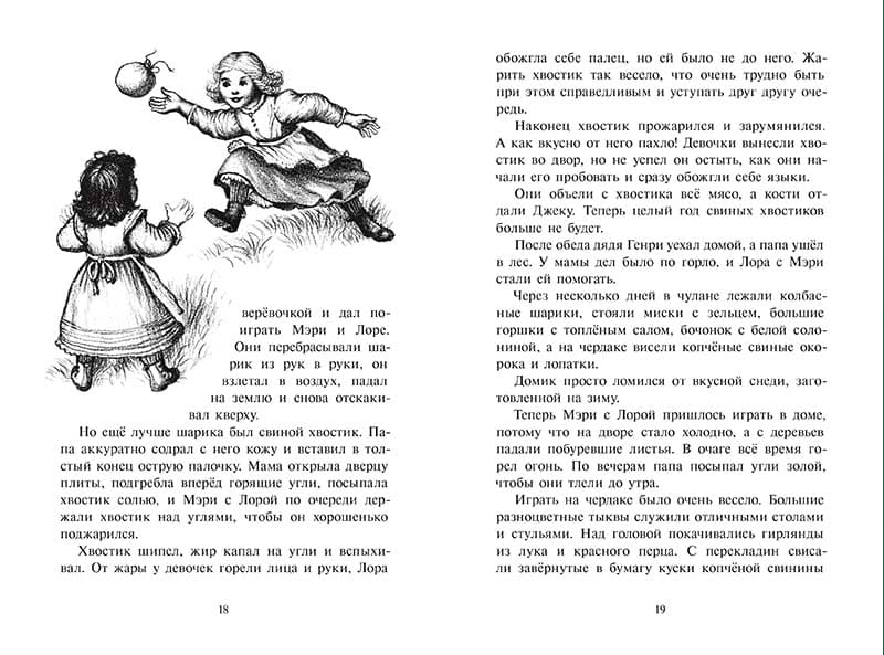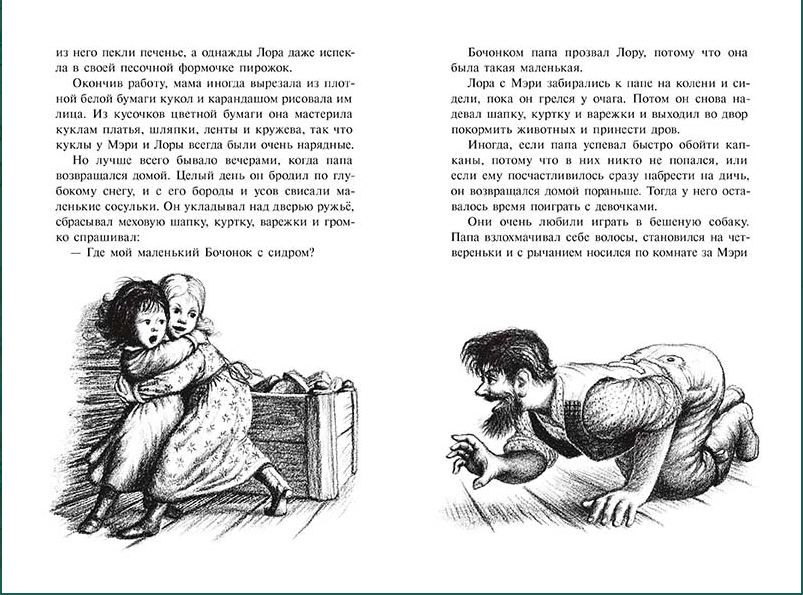 Маленький домик в больших Лесах» – это первая книга знаменитой автобиографической эпопеи американской писательницы Лоры Инглз Уайлдер.Четырёхлетняя Лора живет на краю огромных лесов Висконсина вместе с сёстрами, верным псом Джеком и родителями – первыми переселенцами, осваивавшими свободные земли запада США.Жизнь семьи настолько сурова, что ребёнку двадцать первого века впору воскликнуть: как всё это возможно вытерпеть?!«Если пойдешь на север – иди хоть день, хоть неделю, хоть месяц, – нигде не увидишь ничего, кроме леса». Нужно тяжёлым трудом добывать пропитание, заранее готовиться к холодной зиме и остерегаться диких зверей, которые бродят вокруг дома. Но папа – единственный мужчина в семье – умеет всё: отливать пули, охотиться, пахать, сеять и собирать урожай, коптить мясо и замечательно играть на скрипке. И он нежно любит маму и своих дорогих дочек. Всю работу по дому выполняет терпеливая и заботливая мама: «Стирать — в понедельник, гладить — во вторник, штопать — в среду, сбивать масло — в четверг, убирать — в пятницу, печь хлеб — в субботу, отдыхать — в воскресенье.Дети воспитываются в религиозной строгости, в условиях ежедневного труда и помощи родителям. А уж если семье Инглз доводится принимать гостей или самим навещать соседей, действует строгий принцип: «Детей должно быть видно, но не слышно». Притом вся повесть от первой до последней страницы — это светлое, радостное воспоминание о счастливом детстве, просторном мире, любящих родственниках и добрых соседях, редких, но ярких и запомнившихся на всю жизнь праздниках.