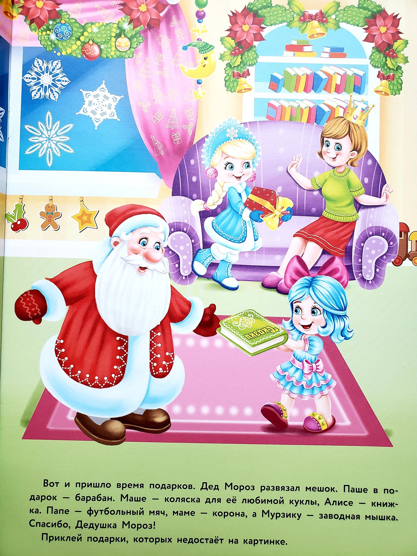 Новый год - это время подарков. Все малыши хотят получить на праздник то, о чём они мечтают больше всего на свете. А кто исполнит их мечты? Конечно же, Дедушка Мороз! Приклеивай многоразовые наклейки и создавай свою новогоднюю историю!