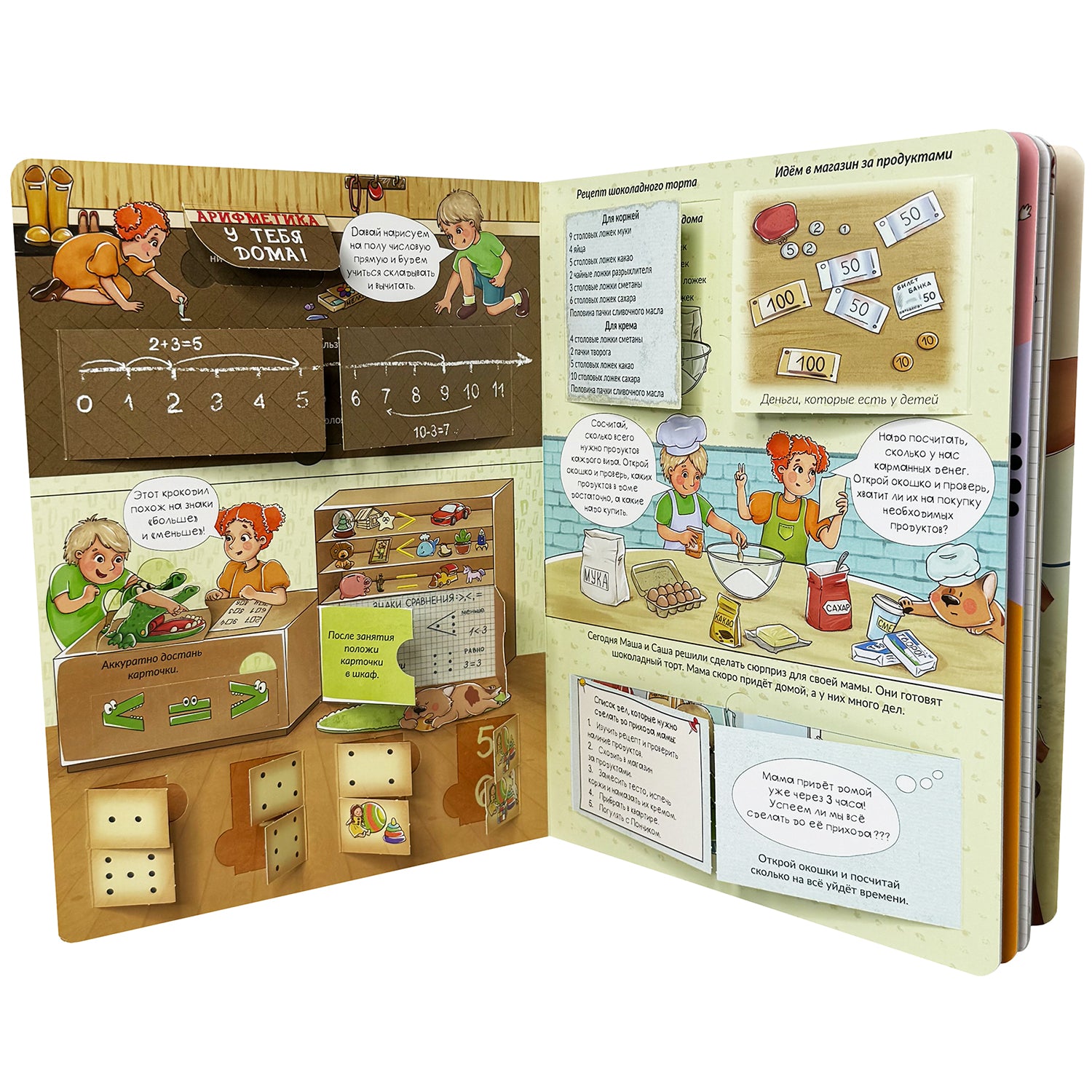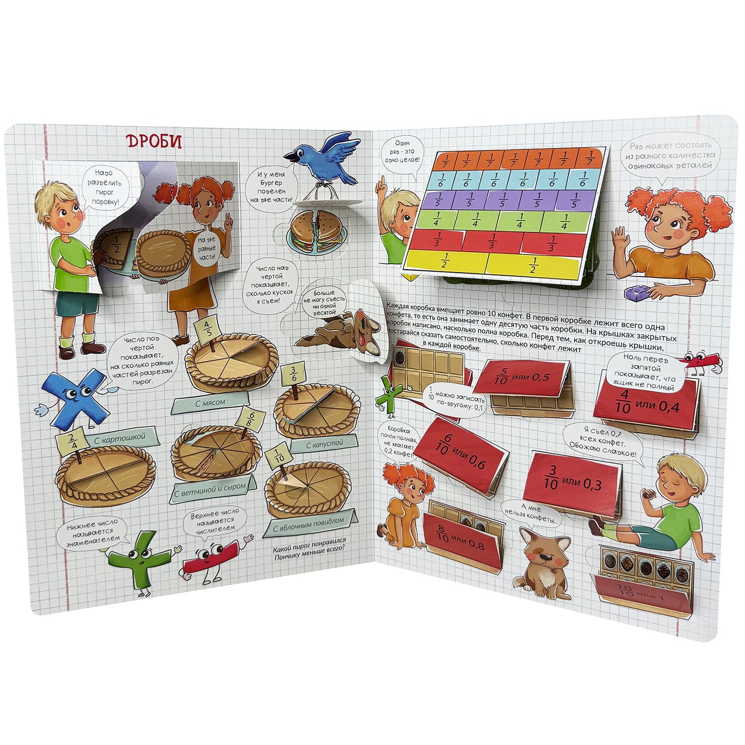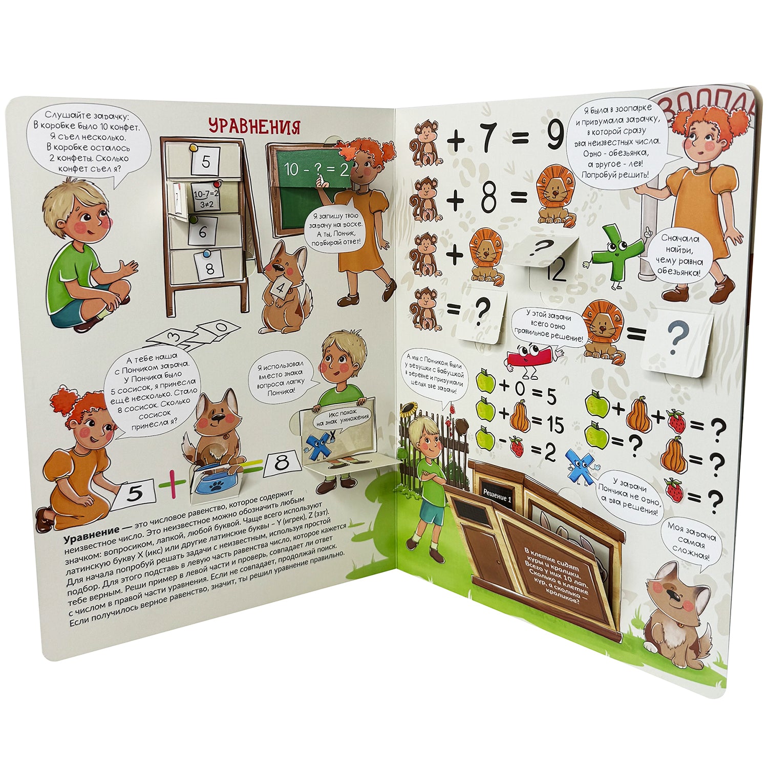 Математика – это увлекательно и весело! Не веришь? Тогда скорее открывай книжку! Сначала ты отправишься в путешествие в прошлое и узнаешь, как древние люди обходились без цифр, а потом всё-таки придумали их. Дальше тебя ждёт масса интересных открытий, ведь математика встречается на каждом шагу. От числовой прямой ты перейдёшь к сравнению чисел, а потом отправишься в магазин, чтобы купить продукты для праздничного торта. После сложения и вычитания тебя ждёт удивительный тренажёр, который поможет быстро выучить таблицу умножения. Тебе кажется, что дроби и уравнения для читателя постарше? Ничего подобного! Вместе с героями книги ты легко разберёшься в том, что такое целое и часть целого, а потом решишь первые задачи с неизвестным. В конце книги снова немного истории: ты узнаешь, как в старину люди измеряли расстояния, и какими приборами для измерения пользуемся мы сейчас.