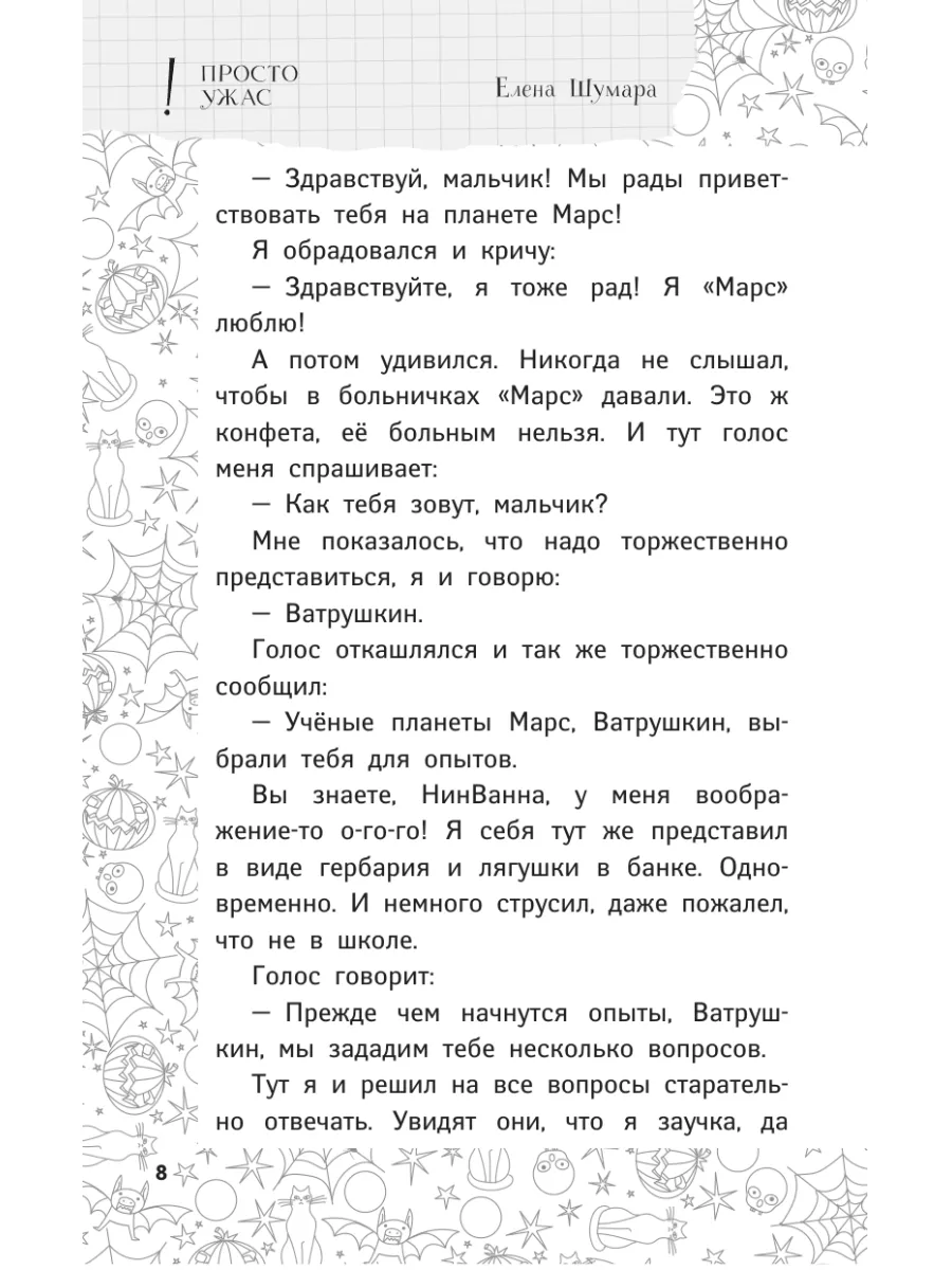 Итак: как вести себя, если тебя похитили марсиане? что делать, если учительница превратилась в монстра — а отвечать урок всё равно надо? а может, твой зубной врач оказался настоящим чудовищем? или вдруг выяснилось, что в любимой энциклопедии описаны одни лишь ужасы? как быть, если по соседству завелся призрак?.. Советы по выходу из этих и многих других жутких ситуаций — в новых криповых историях, которые рассказали: Ирина Асеева, Мара Гааг, Вера Гамаюн, Александр Егоров, Анна Зимова, Виктория Медведева, Игорь Родионов, Валерий Роньшин, Елена Шумара и Наталья Щерба.