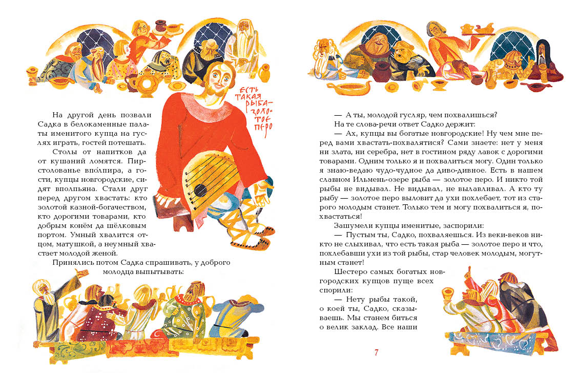 Жил в давние времена в богатом Великом Новгороде добрый молодец Садко по прозванию Садко-гусляр. Был он таким искусным музыкантом, что заслушивались его и простые люди, и знатные. Сам Водяной Ильмень-озера за чудную игру наградил его, сделал богатым купцом. Стал Садко торговать, богатства свои преумножать, поплыл за море - и попал в плен к самому царю Морскому: уж больно понравилась тому игра Садко-гусляра.