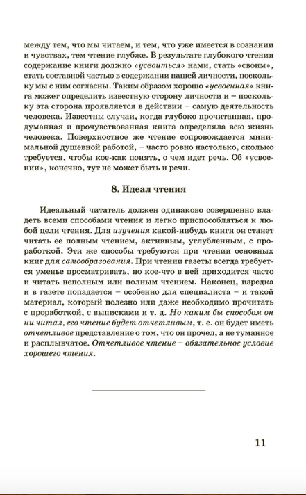 Что сложного может быть в чтении? Человек знает буквы, умеет соединять их в слова, затем, соответственно, в предложения и абзацы. Читать мы учимся ещё в дошкольном возрасте, и этот навык не покидает нас всю жизнь. Но, оказывается, читать правильно умеют далеко не все. Чтение – настоящее искусство, секреты которого раскрываются в этой книге.Автор даёт множество полезных практических советов, как начинающим, так и опытным читателям. Книга рассказывает, как развить мышление и воображение, чем отличается чтение художественной литературы от знакомства с научными изданиями, как правильно пользоваться предисловием и оглавлением и применять полученные из книг знания в повседневной жизни. Изучив эту книгу, каждый может стать идеальным читателем и научиться получать от общения с книгами истинное наслаждение.