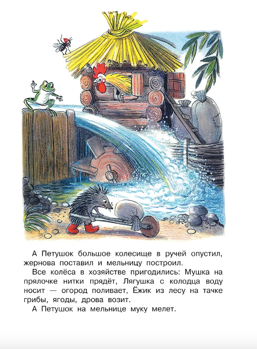 Любое дело ладится, если рядом есть друзья! Однажды Мушка, Лягушка, Ежик и Петушок обнаружили телегу с разными колесами. И придумали они тогда снять эти колеса да забрать себе каждый по колесу… Что из этого вышло расскажет эта яркая детская книга.