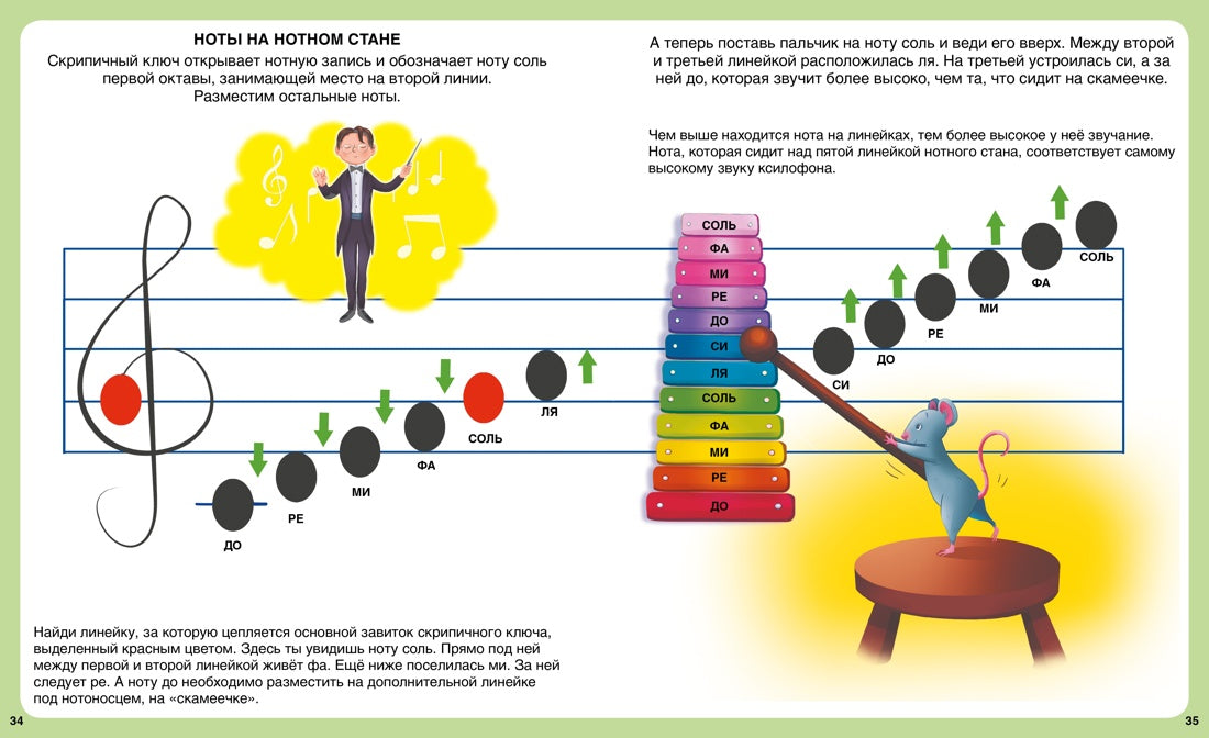 Увлекательная энциклопедия открывает детям мир музыки. В книге есть схемы нотного стана, музыкальных ключей, объяснения нотной грамоты.