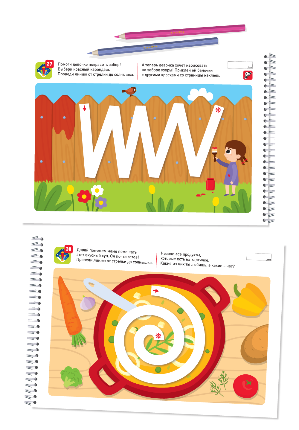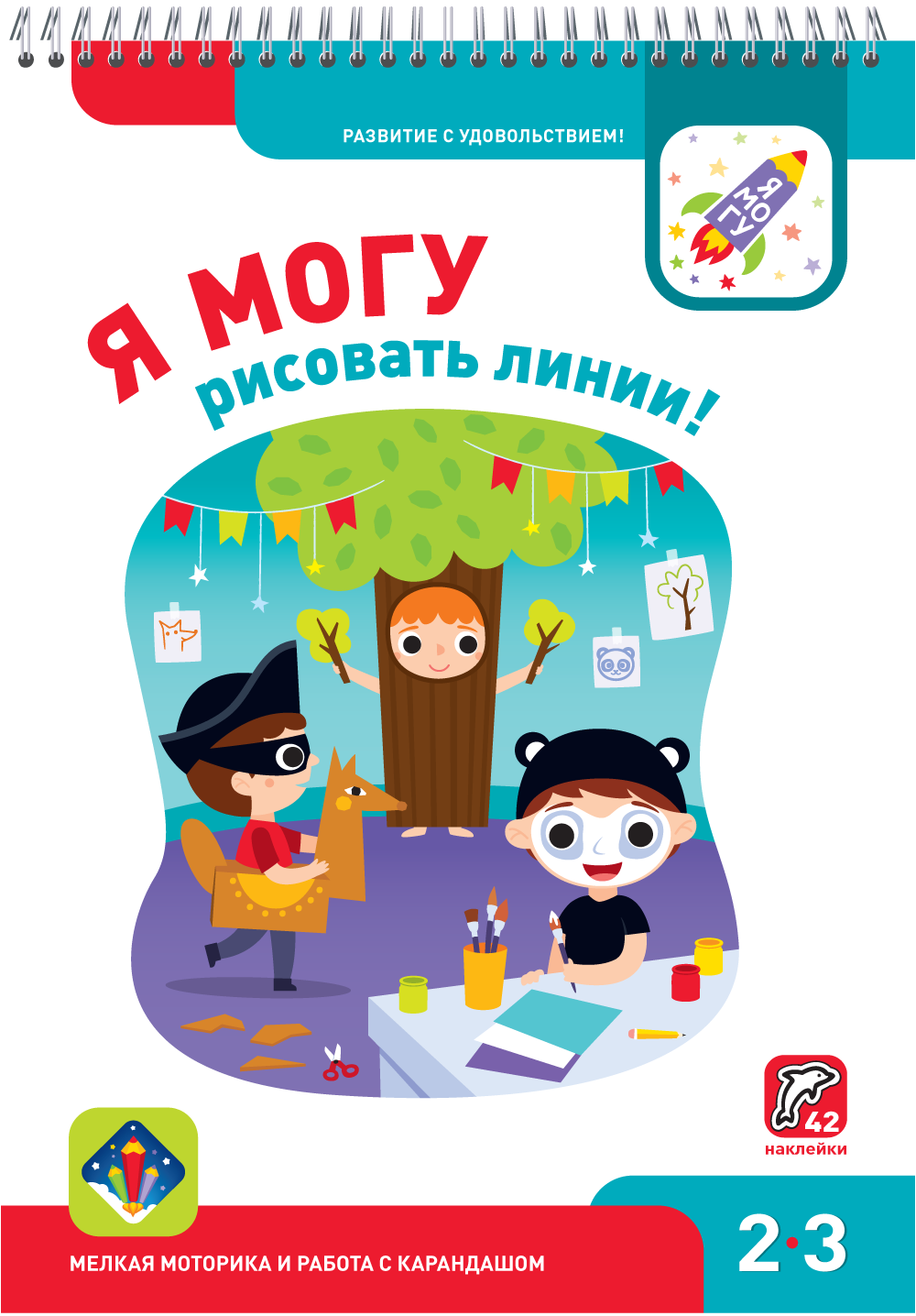 В этой тетради собрано 63 очень интересных задания, которые помогут ребёнку научиться правильно держать карандаш, проводить линии точно и аккуратно, подготовить руку к письму. Рисование линий - это тренировка мелкой моторики, которая очень важна для развития речи. С этой тетрадью ребёнок станет более внимательным, усидчивым и научится концентрироваться на задании. Тетрадь предназначена для занятий с детьми 2-3 лет. Задания в тетради выстроены по принципу от простого к сложному. Это поможет ребёнку почувствовать уверенность в своих силах. В тетради есть лист с 42 наклейками, которые так нравятся детям. Заламинированные многоразовые наклейки отлично подойдут для малышей.Пособия напечатаны на специально подобранной плотной бумаге, с которой будет удобно работать самым маленьким. Все тетради имеют переплёт на пружине, который не даст страницам разлететься и не будет мешать во время выполнения заданий.