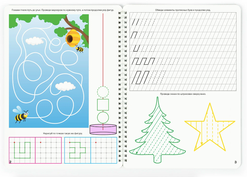 Развивающие прописи научат вашего ребенка выполнять различные графические задания, направленные на развитие начальных навыков письма и правильной постановки руки. Все рисунки в тетради яркие, крупные, задания построены по принципу «от простого к сложному». Вас ждут разнообразные лабиринты, задания по точкам, клеткам и прочее.