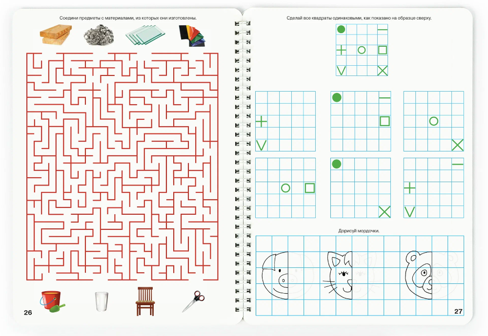 2. Задания, содержащиеся в тетради, помогают развивать у ребёнка внимание, усидчивость, зрительное восприятие, умение ориентироваться в пространстве листа и повышают уровень наглядно-образного мышления.