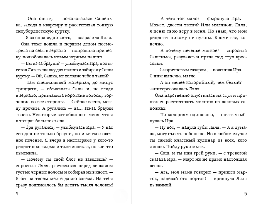 История Иры напоминает о том, что не стоит отказываться от собственных желаний в угоду чужому мнению — надо выбирать сердцем то, что по-настоящему важно для тебя. Ира любит готовить. Она смело экспериментирует на кухне, вдохновляясь кулинарными шоу и постами блогеров. Все карманные деньги она тратит на сборники рецептов и продукты для очередного шедевра. Подруги готовы драться за лишний кусочек ее брауни и мягкого овсяного печенья.