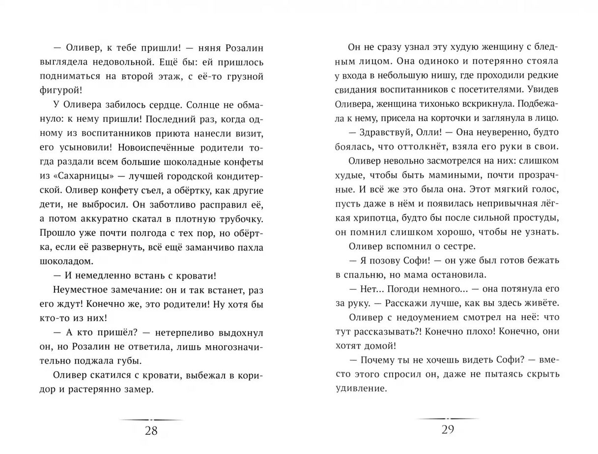 Привычная жизнь с родителями в уютном доме осталась позади, и теперь вокруг Оливера и Софи только мрачные стены приюта и неумолимо приближающаяся зима. Попечительница не сильно хлопочет: еда здесь очень скудная, поленья в камине прогорают быстро, и с утра в спальнях так холодно.